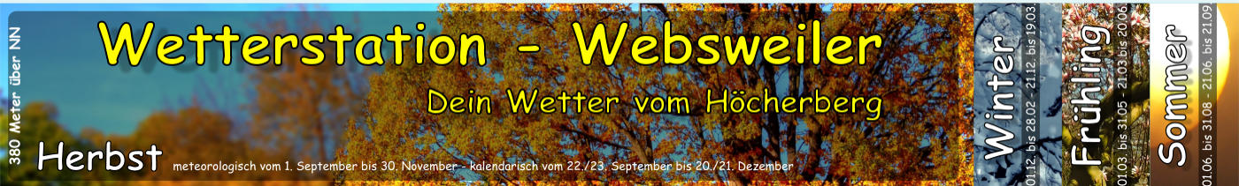 DieWetterstation"Websweiler"isteineprivateWetterstationund wirdvonMikeWeberbetrieben.DieStationhatam15.Februar2007ihrenBetriebinWebsweileraufgenommen.SeitdiesemTag werdendieWetterdatenvonderStationaufgezeichnet,unddie Daten im Internet veröffentlicht.WebsweilerliegtamnördlichenTeildesSaar-PfalzKreisesauf einer Höhe von ca. 380 Meter über Normal Null. Mehr Info´s